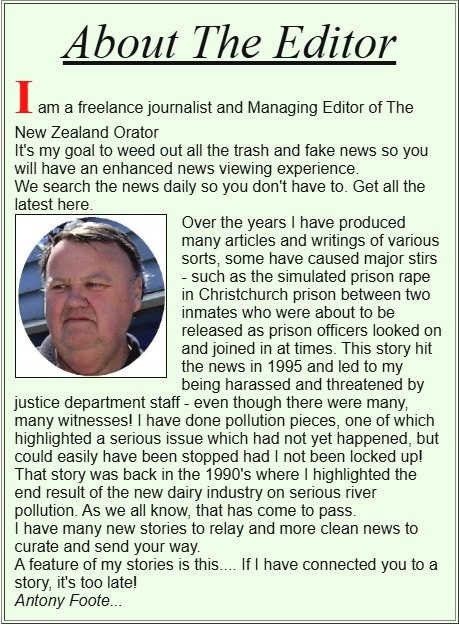 TNZO is The New Zealand Orator - TNZO is NOT advertising driven! - TNZO curates and permanently archives important news stories which would otherwise die over two weeks as the news cycle expires!